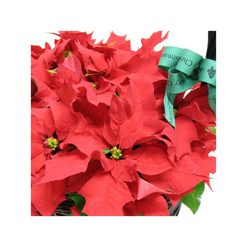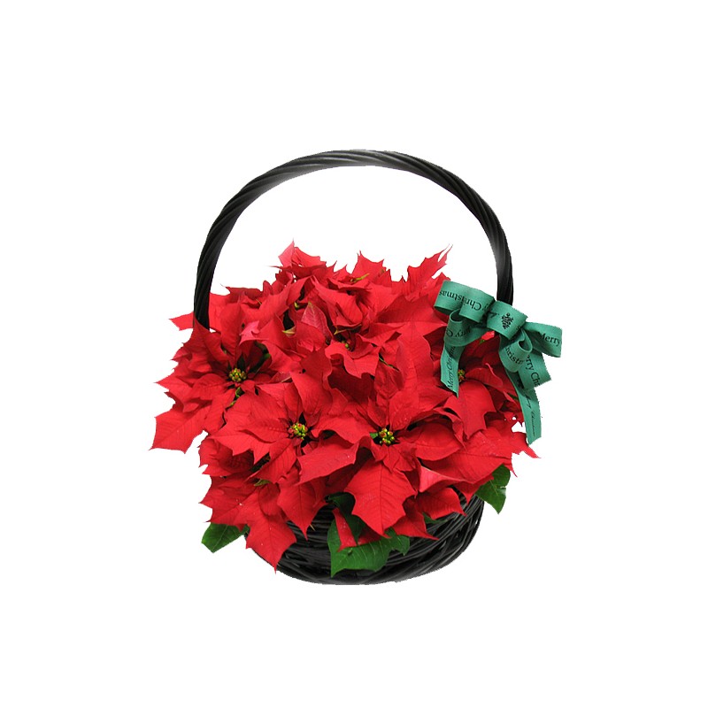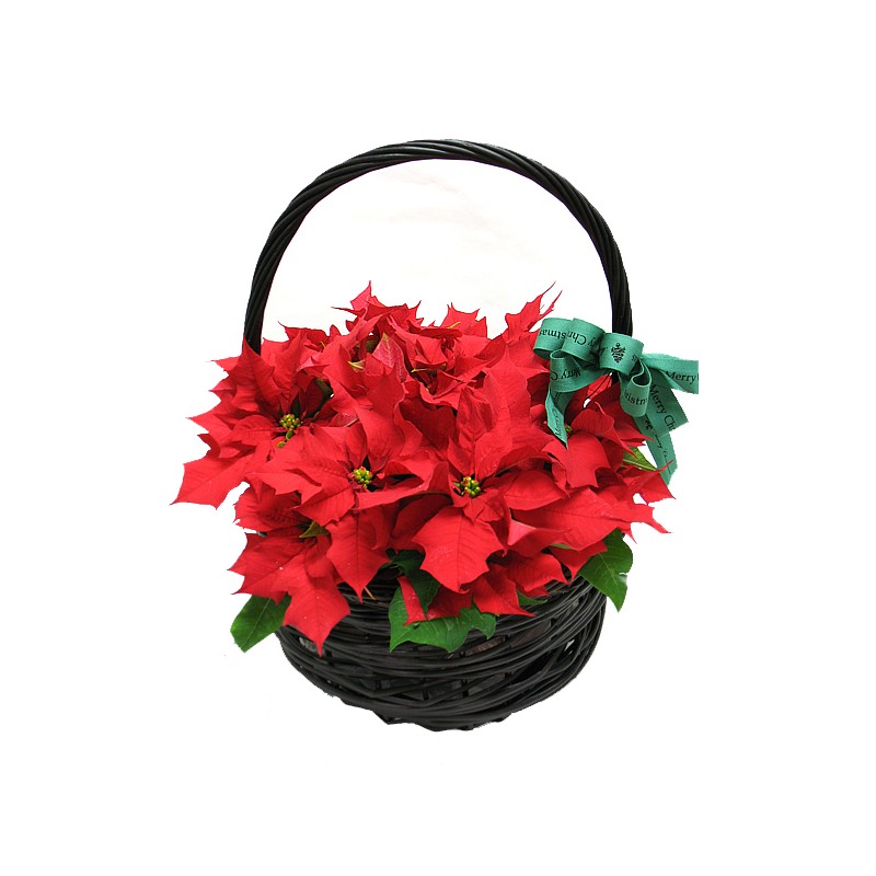 One of our large signature poinsettia plants in a basket. We grow the nicest poinsettias around! Product consists: 3 Poinsettia plants in a basket. Dimension: 30 x 30 cm
