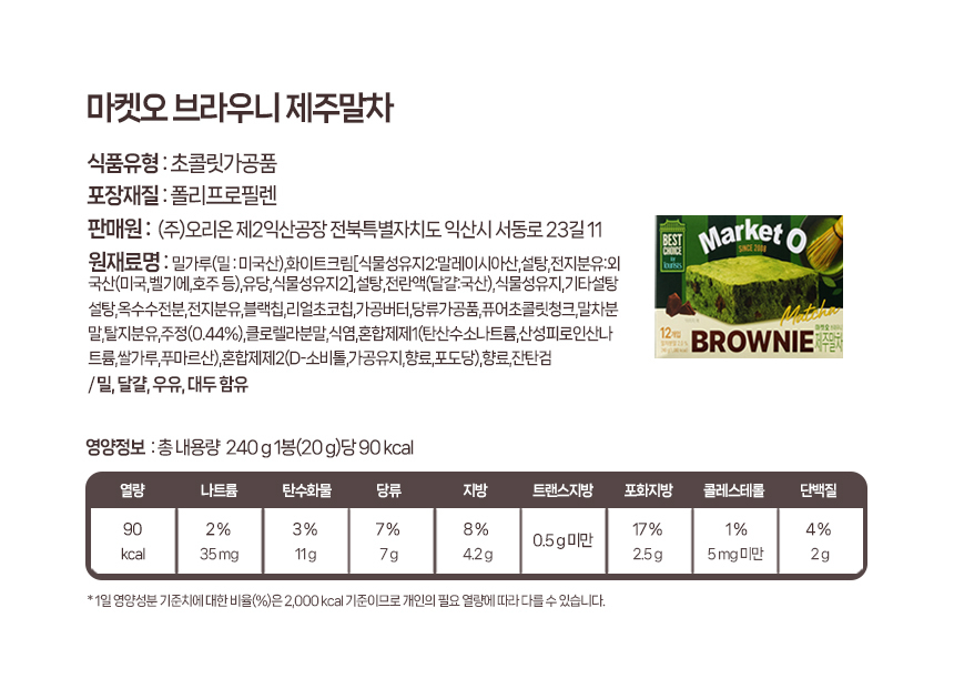Orion Market O Jeju Matcha Brownie 240g x 4 (20 g x 12 packs) 90 kcal / pack.