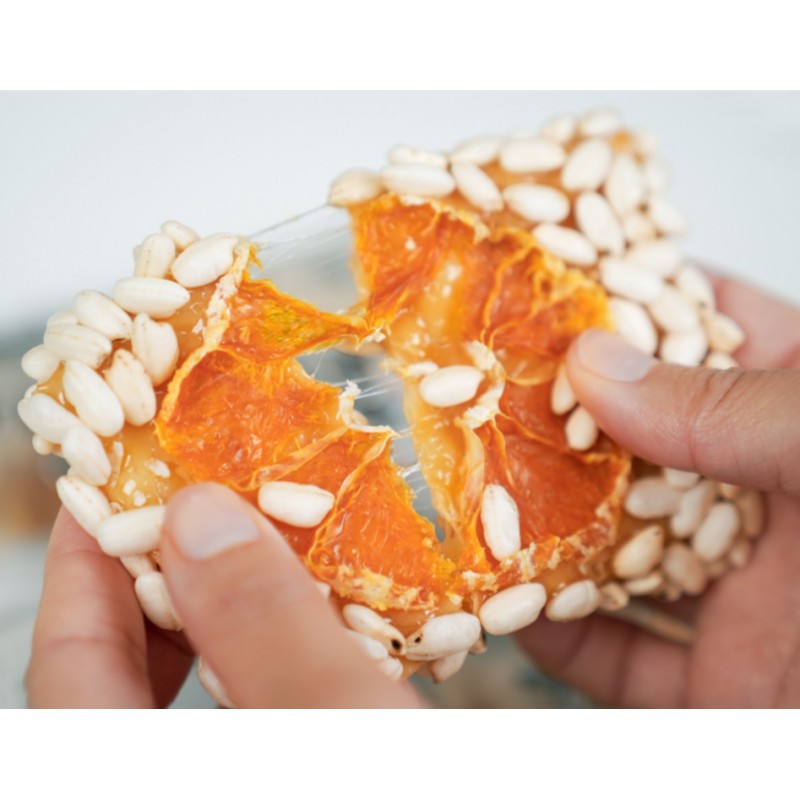 Your recipient can enjoy these puffed rice cakes, made with Korean non-glutinous rice, known for its rich flavor, to create a tangerine-infused, savory flavor.